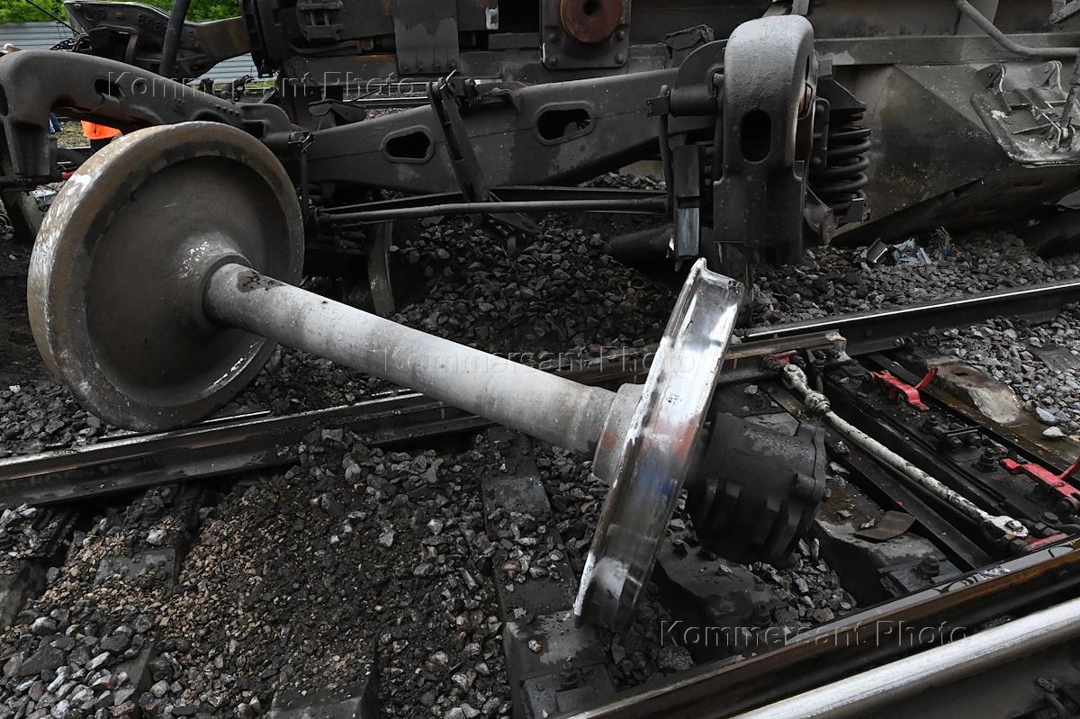 Последствия схода грузовых вагонов на стации Бирюлево-Товарная.