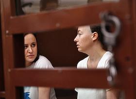 Рассмотрение ходатайства о продлении ареста режиссеру Евгении Беркович и драматургу Светлане Петрийчук в Хамовническом суде.