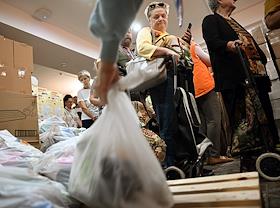 День открытых дверей в благотворительном фонде "Банк еды "Русь". Жанровая фотография. Люди в очереди…