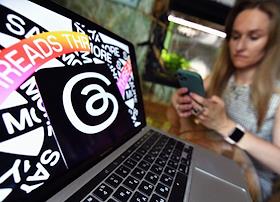Жанровая фотография. Приложение Threads на экранах смартфона и ноутбука.