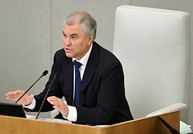 Пленарное заседание Государственной думы (ГД) России. Председатель ГД России Вячеслав Володин во…