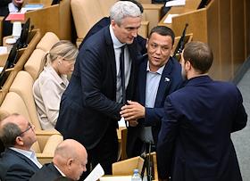 Пленарное заседание Государственной думы (ГД) России. Справа налево: член комитета ГД России по…