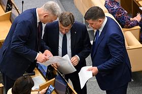 Пленарное заседание Государственной думы (ГД) России. Слева направо: заместитель руководителя…
