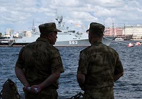Репетиция парада ко Дню Военно-Морского флота (ВМФ) в акватории Невы. Жанровая фотография. Малый…