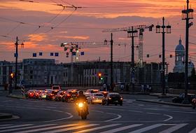Виды Санкт-Петербург. Невский проспект. Перекрытие Невского проспекта для проезда делегаций с форума…