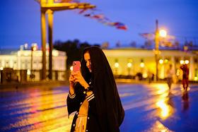 Виды Санкт-Петербург. Жанровая фотография. Девушка снимает на смартфон, накрыв голову курткой от…
