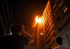 Пожар в центре Еревана, на пересечении улиц Кочиняна и Бузанда.