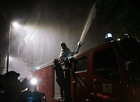 Пожар в центре города, на пересечении улиц Кочиняна и Бузанда. Пожарные во время тушения.