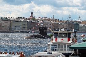 Репетиция парада ко Дню Военно-Морского флота (ВМФ) в акватории Невы. Дизель-электрическая подводная…