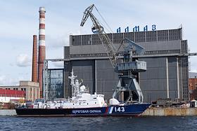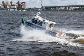 Виды Санкт-Петербурга. Жанровая фотография. Катер береговой охраны на фоне здания, расположенного на…