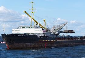 Виды Санкт-Петербурга. Жанровая фотография. Грузовое судно "Невский-35" во время погрузочных работ.