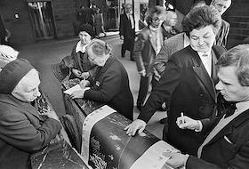Конгресс народов СССР в здании МХАТ имени Горького. Жанровая фотография. Сувенирный ларек.