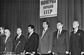 Конгресс народов СССР в здании МХАТ имени Горького. Лидер легально незарегистрированной Всесоюзной…