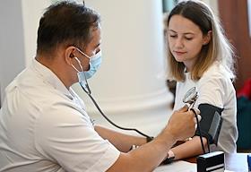 Медицина Акция "День донора" в рамках проекта "Агрегатор решений антикризисного управления в сфере донорства крови и костного мозга" в павильоне "Дом культуры" на ВДНХ.