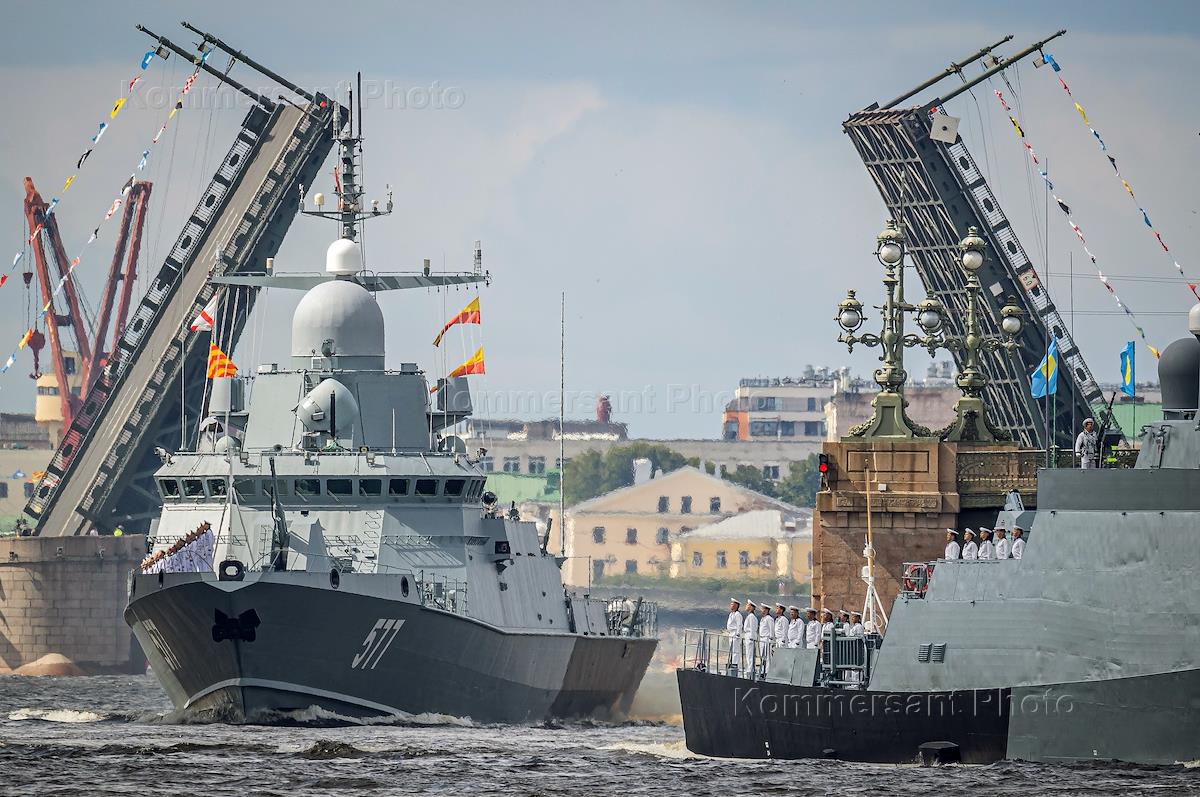 Репетиция парада ко Дню Военно-Морского флота (ВМФ) в акватории Невы. Жанровая фотография. Малый…