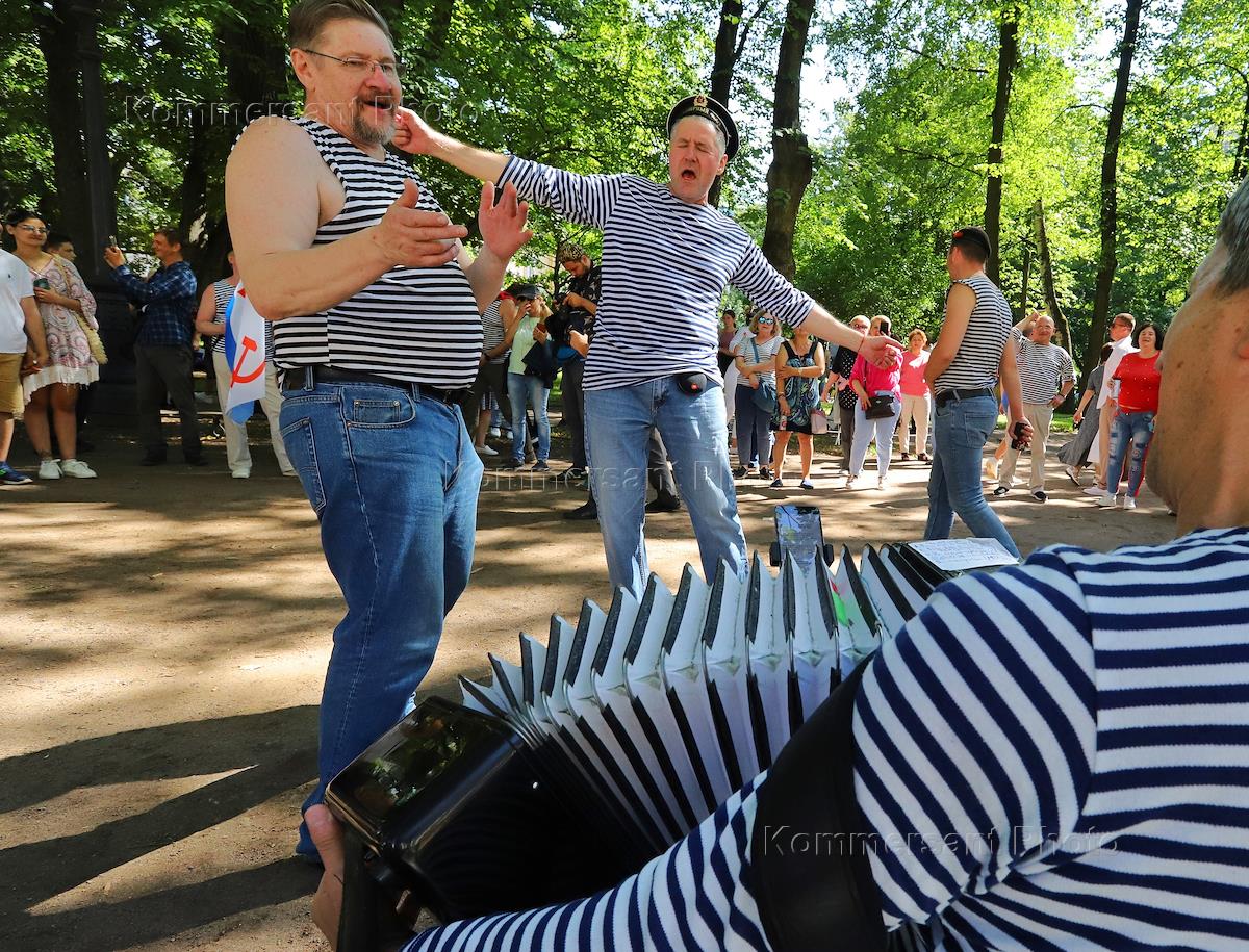 Празднование Дня Военно-морского флота (ВМФ) России в Санкт-Петербурге. Ветераны ВМФ танцуют в парке…