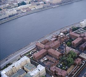 Следственный изолятор "Кресты" на Арсенальной набережной — вид с вертолета.