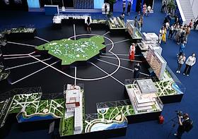 XXII Московский урбанистический форум в Гостином дворе. Посетители на выставке о здравоохранении,…