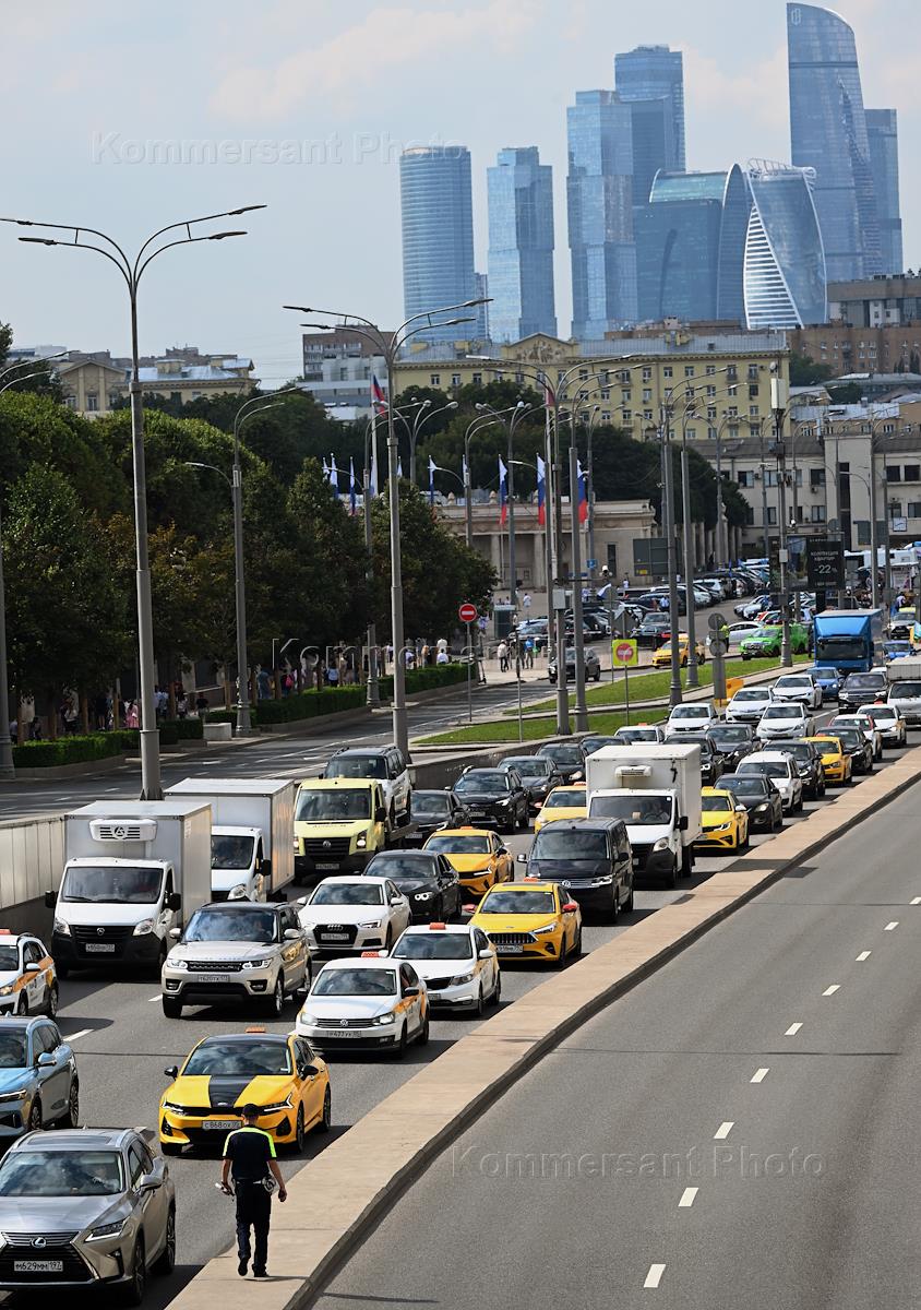 Виды Москвы. Жанровая фотография. Автомобили во время движения по дороге.