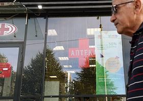 Виды Санкт-Петербурга. Жанровая фотография. Прохожие на улице на фоне аптеки.