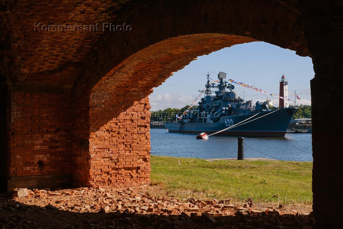 Виды Кронштадта во время празднования Дня Военно-морского флота (ВМФ) России в Кронштадте. Корабли в…