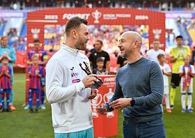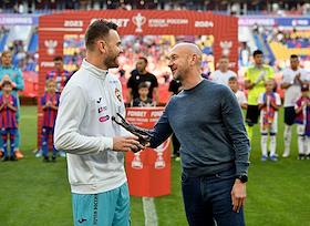 Спорт Церемония вручения награды "Вратарь года" имени Льва Яшина на стадионе "ВЭБ Арена". Бронзовая статуэтка выполнена по проекту скульптора Георгия Франгуляна.