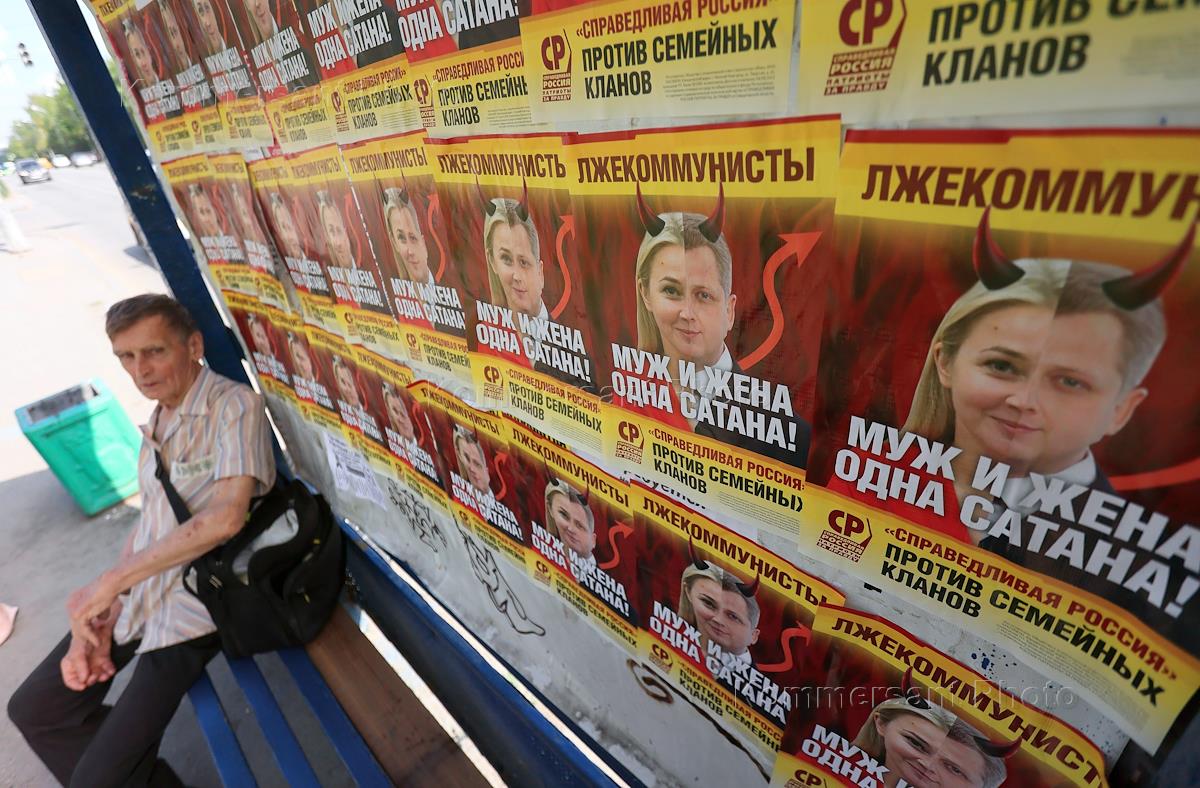 Предвыборная агитация в Екатеринбурге. Жанровая фотография. Агитационный плакат партии "Справедливая…