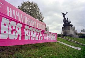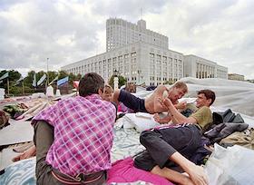 Акция протеста шахтеров на Горбатом мосту у здания Дома правительства России.