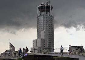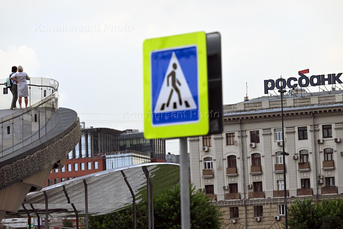 Жанровая фотография. Павелецкий парк. Реклама "Росбанка" на крыше жилого дома.