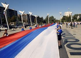 Праздничная акция в честь дня национального флага России в Мариуполе.