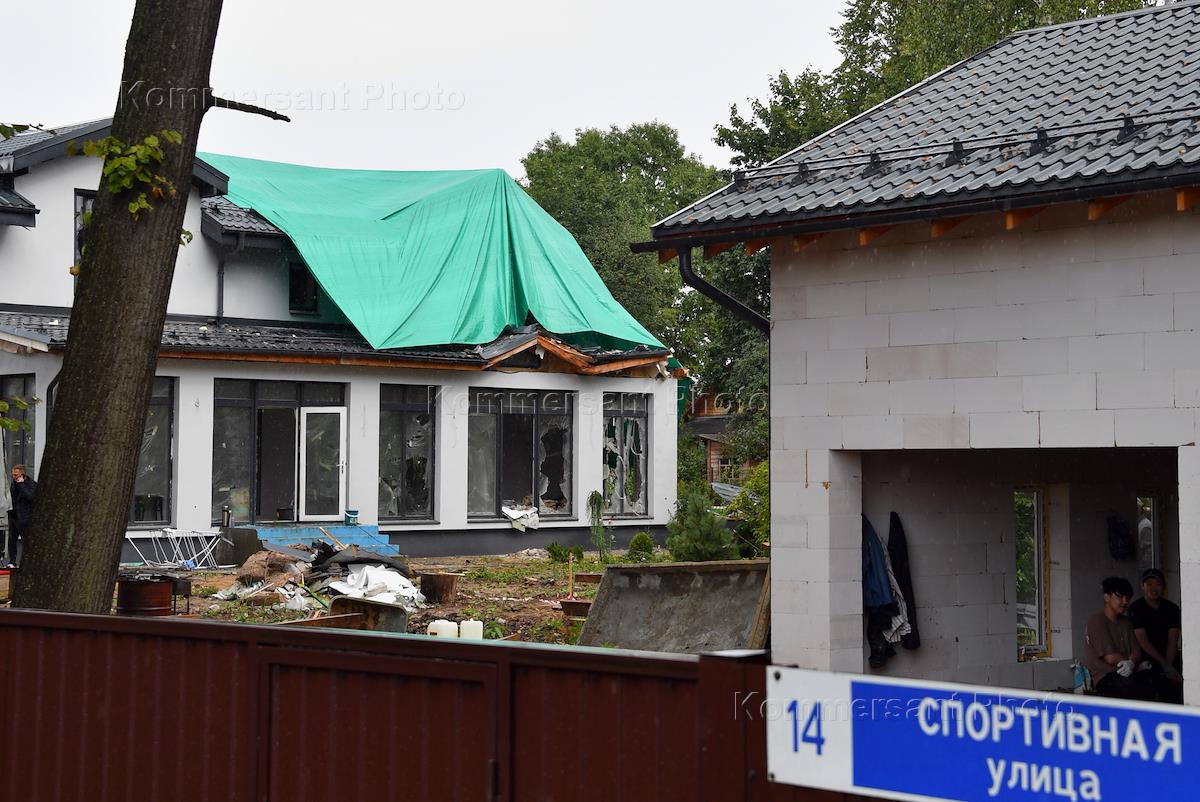 Последствия падения сбитого системами ПВО беспилотника (БПЛА) в жилой частный дом в квартале…