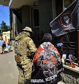 Общество Стихийный мемориал, посвященный погибшему в авиакатастрофе главе ЧВК "Вагнер" Евгению Пригожину, на месте бывшего офиса ЧВК "Вагнер" на улице Ядринцевская в Новосибирске.
