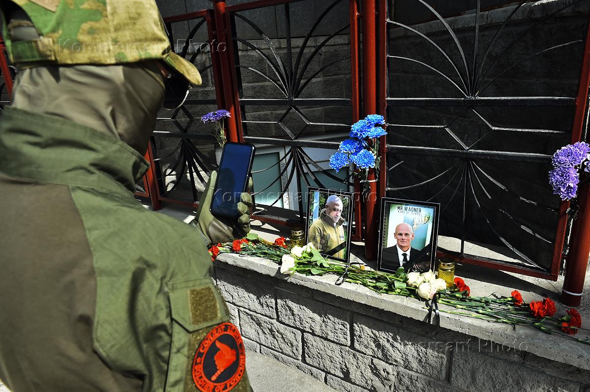 Стихийный мемориал, посвященный погибшему в авиакатастрофе главе ЧВК "Вагнер" Евгению Пригожину, на…