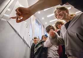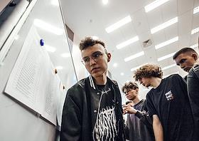 Жанровая фотография. Абитуриенты изучают списки зачисленных в высшее учебное заведение.