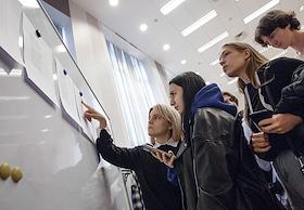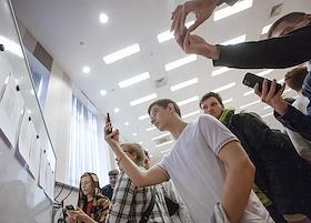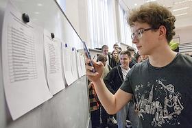 Жанровые фотографии. Абитуриенты изучают списки зачисленных в ВУЗ.