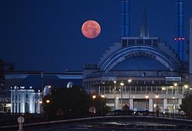 Жанровая фотография. Суперлуние в Москве. Силуэт двуглавого орла на фоне полной луны.