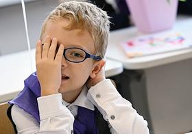 День знаний (1 сентября). Жанровая фотография. Первоклассник во время торжественной линейки в школе…