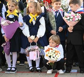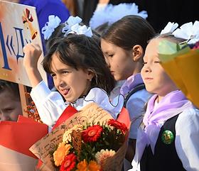 День знаний (1 сентября). Жанровая фотография. Торжественная линейка в школе № 32.