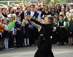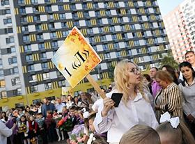 День знаний (1 сентября). Жанровая фотография. Торжественная линейка в школе № 32. Учащиеся после…