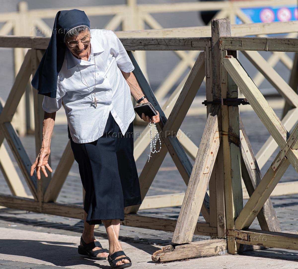 Празднование национального итальянского праздника Феррагосто в Ватикане. Монахиня во время…