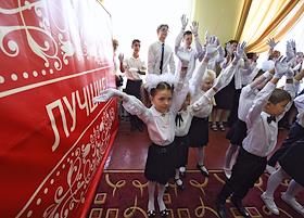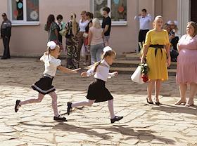 День знаний, посвященный началу нового учебного года, в Донецкой гимназии №6. Жанровая фотография.…