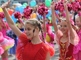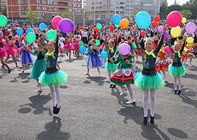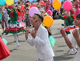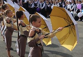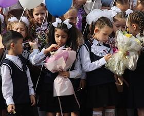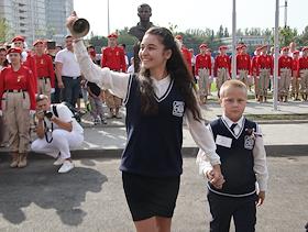 Церемония открытия новой школы в Западном микрорайоне в День знаний. Учащиеся во время церемонии.