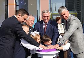 Церемония открытия новой школы в Западном микрорайоне в День знаний. Губернатор Ростовской области…