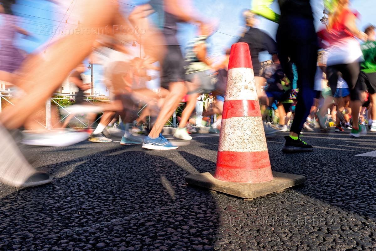 96-й Традиционный легкоатлетический пробег PushkinRun. Жанровая фотография. Участники забега на…