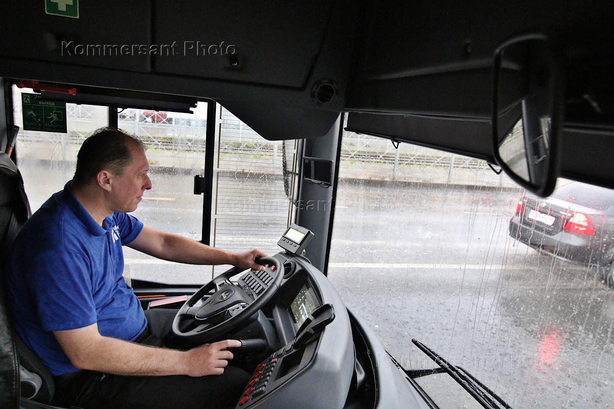 Водитель рейсового троллейбуса нового поколения с Wi-Fi и USB-розетками для гаджетов во время…