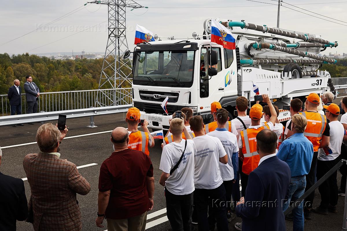 Церемония открытия автомобильной дороги на улице 40 лет Октября. Жанровая фотография. Участники во…