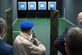 Церемония открытие стрелкового тира на базе средней общеобразовательной школы №23. Учащиеся в тире.