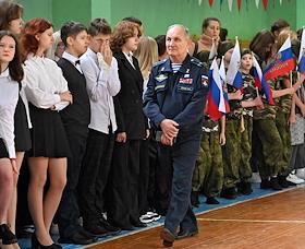 Церемония открытие стрелкового тира на базе средней общеобразовательной школы №23. Учащиеся во время…