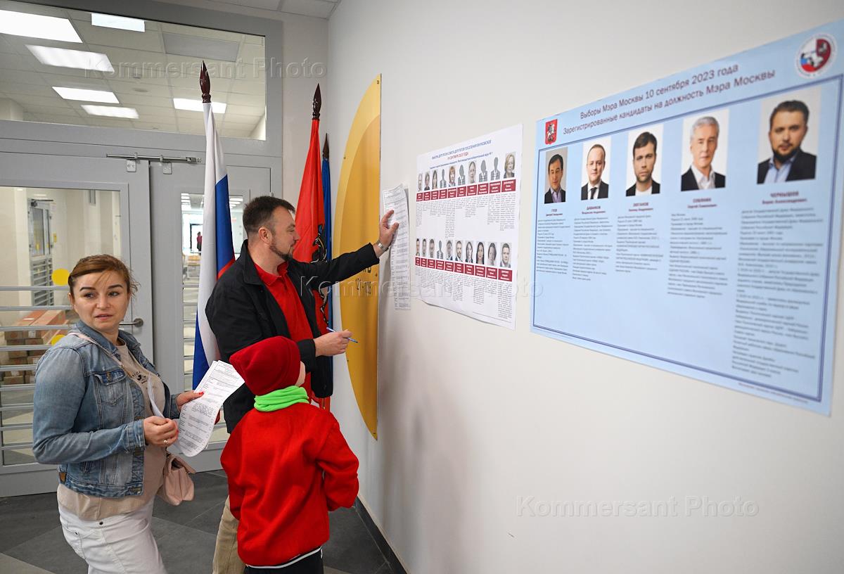 Единый день голосования (ЕДГ)-2023. Выборы мэра Москвы. Жанровая фотография. Избиратели во время…