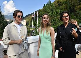Фестиваль онлайн-кинотеатров "Новый сезон-2023" на горном курорте "Роза Хутор". Слева направо:…